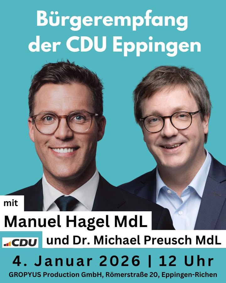 🚀 Unser Ministerpräsidentenkandidat Manuel Hagel heute beim Bürgerempfang der CDU Eppingen! 🙌 In seiner richtungsweisenden Rede zeigte er eindrucksvoll auf, mit welchen Ideen und welchem Spirit er Baden-Württemberg ⚫️🟡 als Ministerpräsident in eine erfolgreiche Zukunft führen will. 🔝 Es sind genau dieser Pragmatismus und dieser Fokus auf die wirklich wichtigen Dinge, die unser Land jetzt braucht! Deshalb am 8. März Manuel Hagel und die CDU wählen! 🗳️🙌Vielen Dank an die Firma Gropyus GmbH für den tollen Rahmen, die Gastfreundschaft und die sehr spannenden Einblicke! 👏