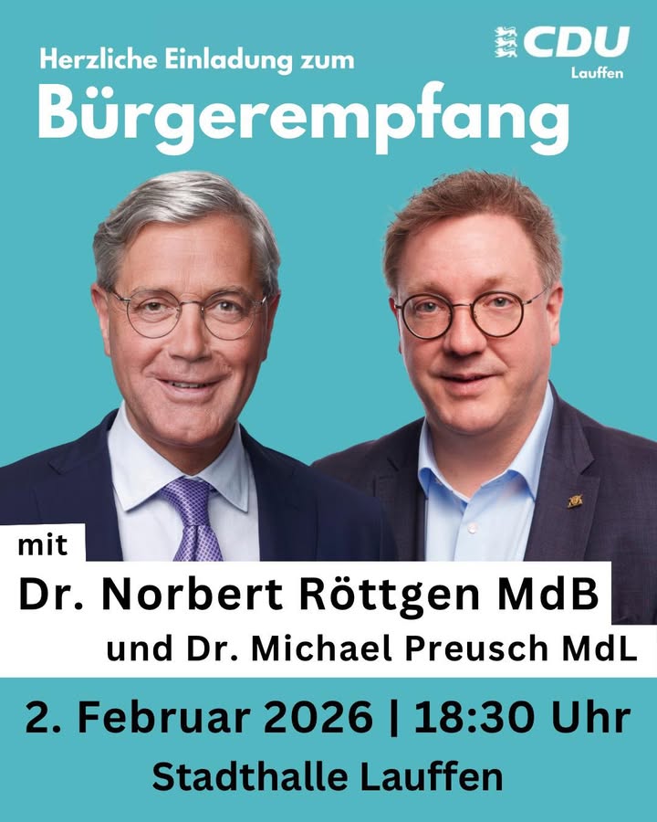 🚀 Seid am kommenden Montag mit dabei, wenn mit Dr. Norbert Röttgen MdB einer der versiertesten Außenpolitiker der #Union zu Gast in Lauffen📍in meinem Wahlkreis ist! Ich freue mich auf den Austausch! 🙌
