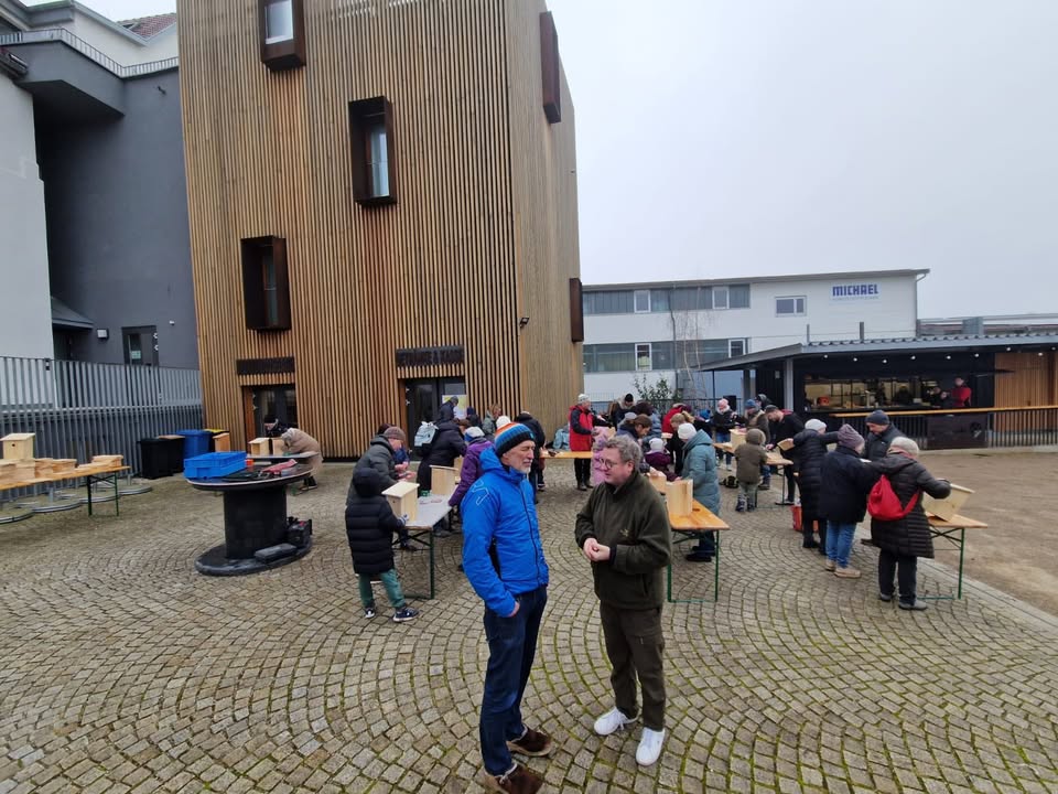 Generationenprojekt der Freunde des Bürgerparks Eppingen e.V. : Eltern, Kinder, Großeltern und Enkel erschienen zum Nistkastenbau 🔨 am Samstag früh. Eine super Idee von Peter Wieser und den Vereinsaktiven. Gespendet wurde das Holz ? von Volker und Tina Lang. Die Kästen tragen die Namen der Erbauerinnen und Erbauer und bieten den Singvögeln 🐦 im Bürgerpark ein Zuhause. #bu?rgerpark #gemeinschaft #generationen #artenschutz